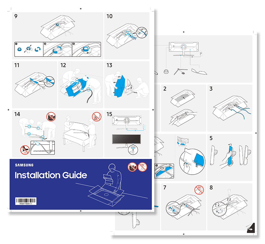 제품 설치 시 사용 이미지만을 사용한 퀵 가이드 형태 매뉴얼