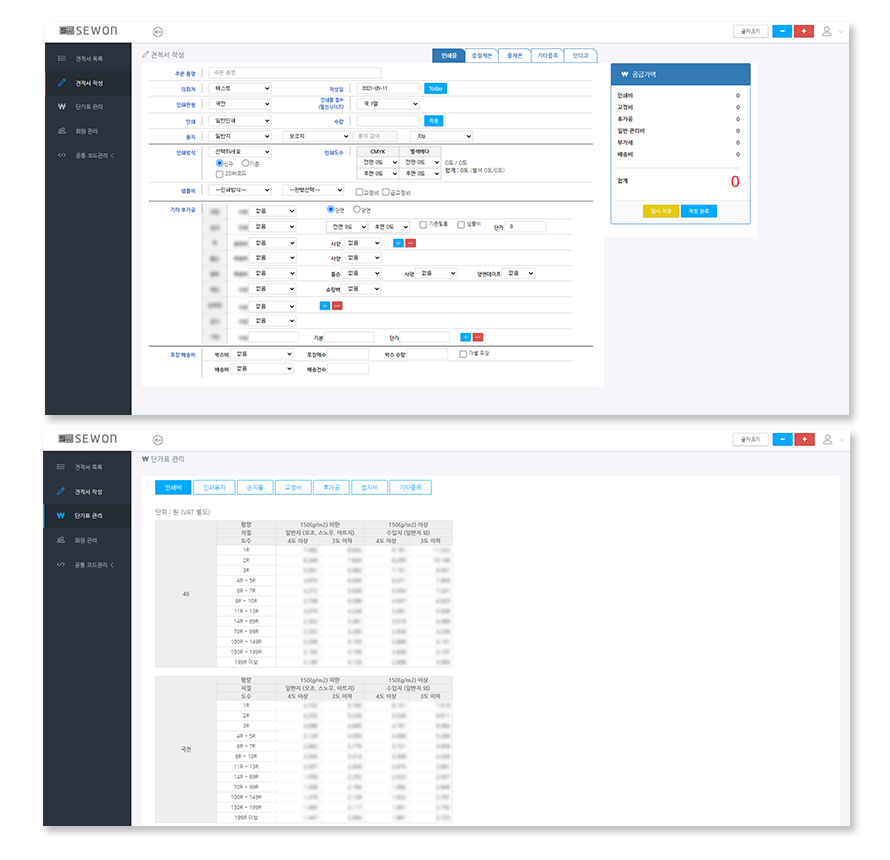 세원정밀 웹 기반의 카탈로그 견적 시스템